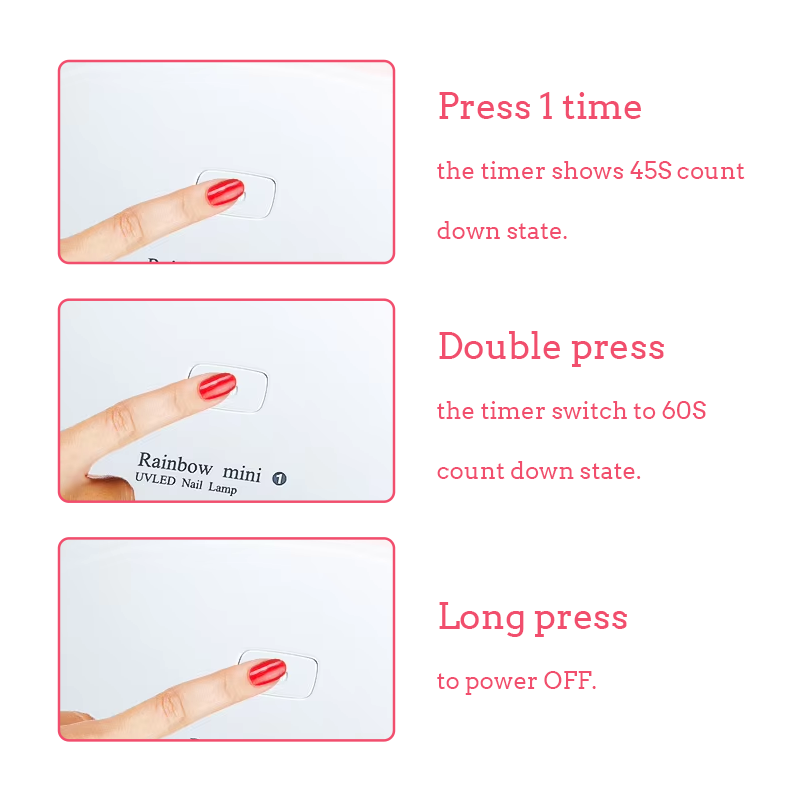 한국어Shenzhen Ruina Optoelectronics Co., Ltd. は、コンパクト ジェル ネイル乾燥ランプの中国の大手メーカー、サプライヤー、輸出業者として、一貫して完璧な品質を追求するという理念を掲げています。このこだわりにより、当社の家庭用UV接着ネイルランプは多くのお客様から信頼を得ています。卓越したデザイン、プレミアム原材料、卓越したパフォーマンス、競争力の高い価格設定、これらはまさにすべての顧客が期待するものであり、当社が提供するものです。もちろん、充実したアフターサービスも同様に不可欠です。