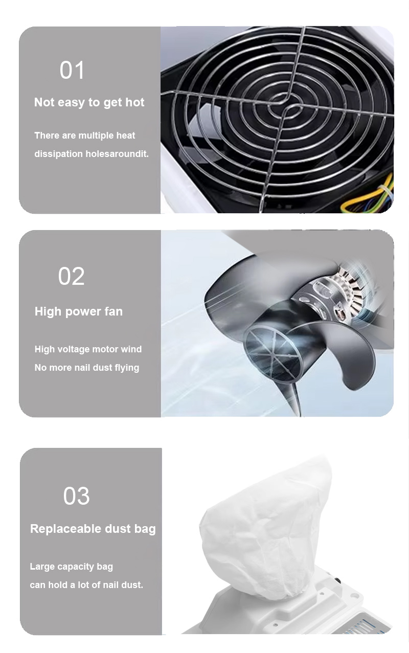 製品は爪の破片を強力に吸着し、ほこりが漏れず、カウンタートップを清潔で整然と保ち、高速掃除機でほこりが漏れず、高出力でより効率的です。