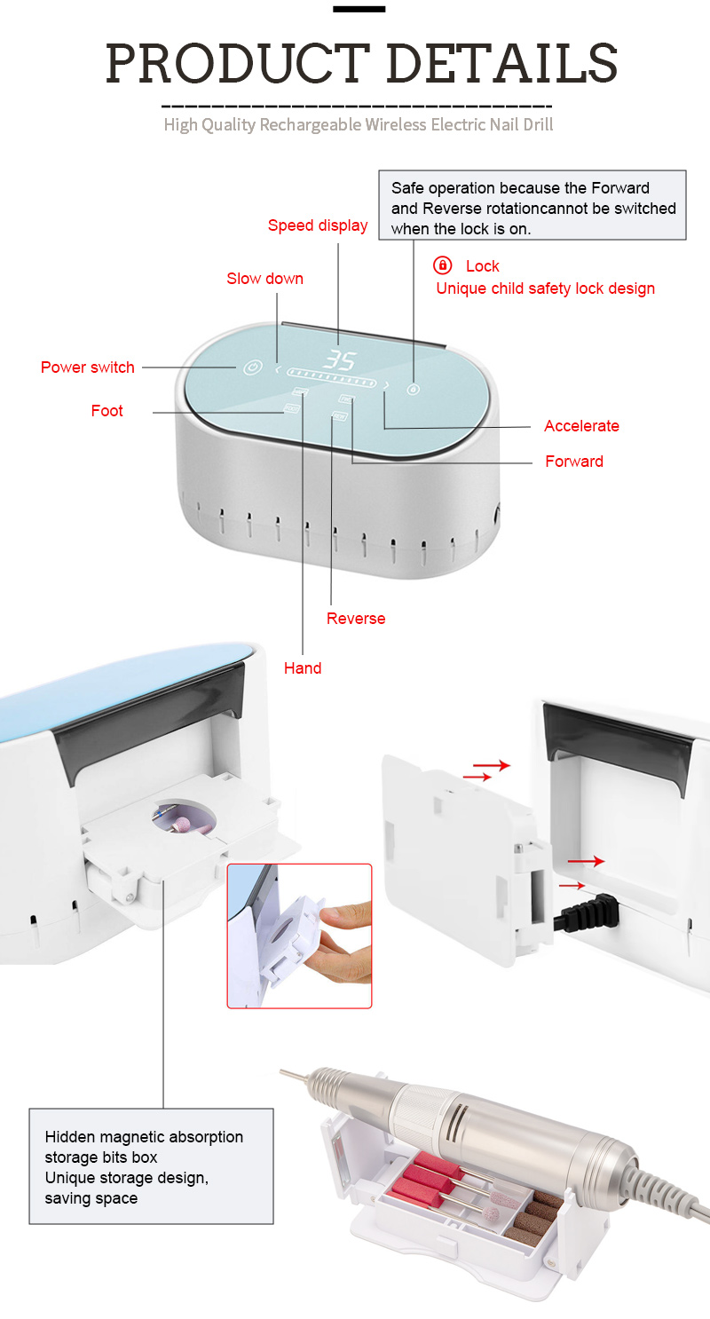 217高速35000RPMポリッシュ除去電動爪やすりの製品特長と用途