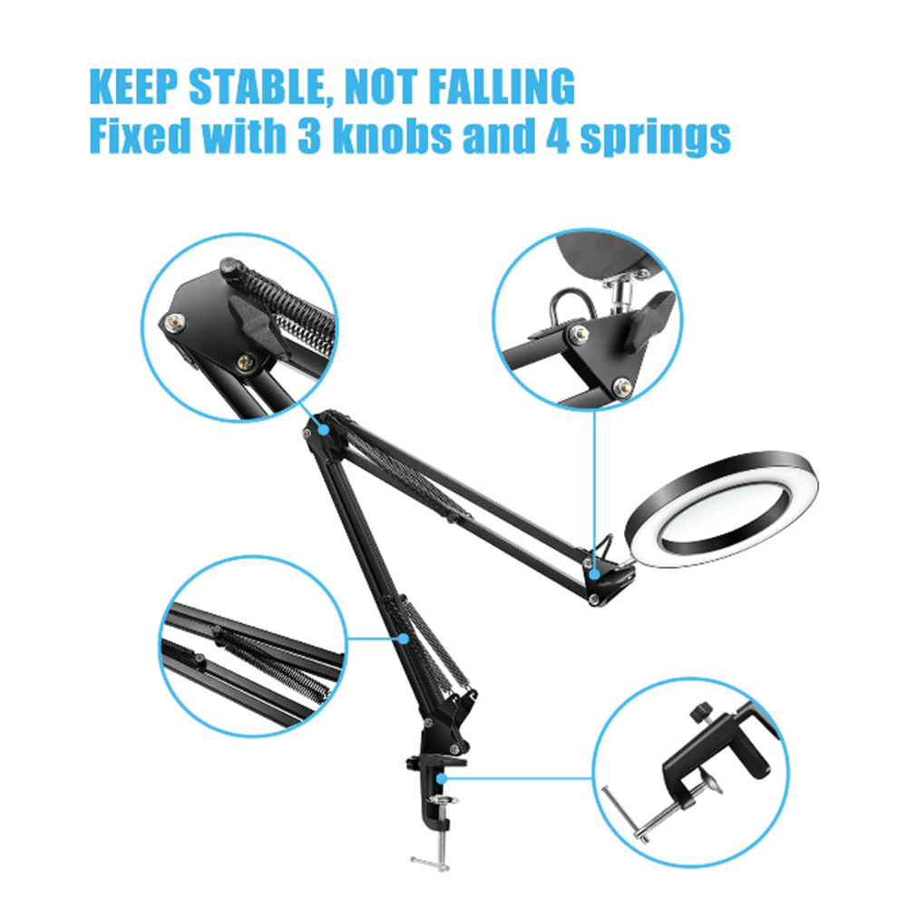 エレガントで洗練されたデザインが特徴の、折りたたみ式の360度回転拡大デスクランプです。優しい光は目に優しく、夜明けの柔らかく自然な光をシミュレートし、眩しさのない快適な照明を提供します。タトゥー、刺繍、ネイルアートなどのさまざまな用途に適しています。