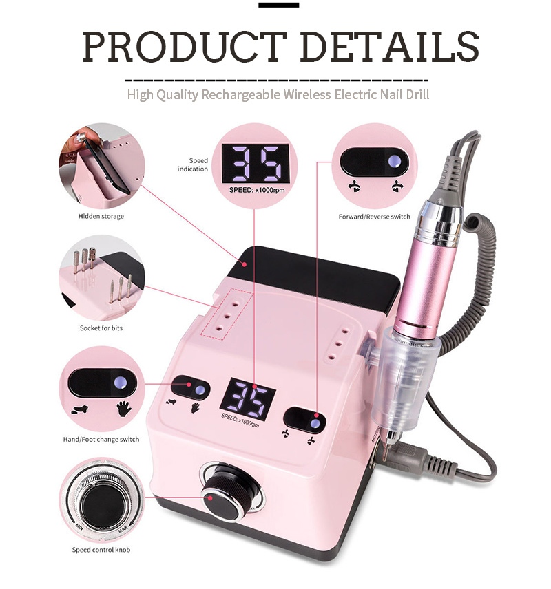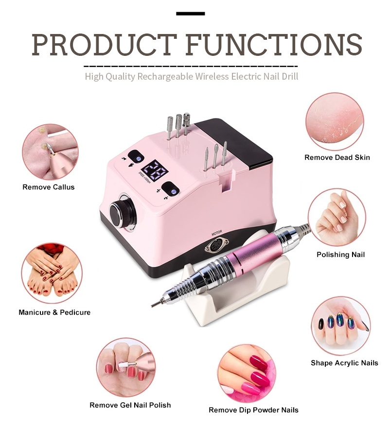 この手持ち式ネイルドリルとポリッシャーは、黒/白/グレー/ブルー/レッド/ピンク/オレンジのカラフルな色からお選びいただけます。