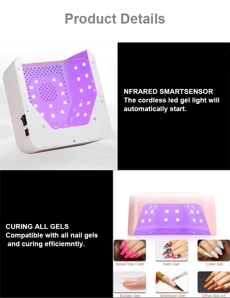 当社の主な製品には、LEDネイルランプが含まれます:186W/168W/86W/84W/80W/75W/72W/65W/60W/54W/50W/48W/36W/24W/16W/12W/6W/3Wなど。充電式ワイヤレスモデル: 156W/120W/96W/90W/86W/84W/80W/72W/66W/64W/60W/54W/48Wなど ネイルアートドリル:80W/65W/60W/45W/35W/25W/15Wなど ワイヤレス充電モデル:45W、35W、30W、25W、 20W、15Wなど25000RPM/30000RPM/35000RPM/40000RPM/45000RPM/ブラシレス/超高速ブラシレス。フル集塵機。 80W/68W/60W/48W/45W/40W/36W/30W/25W/20W/15W/6Wなど、ワイヤレス充電モデル:80W、60W、40W、30W。