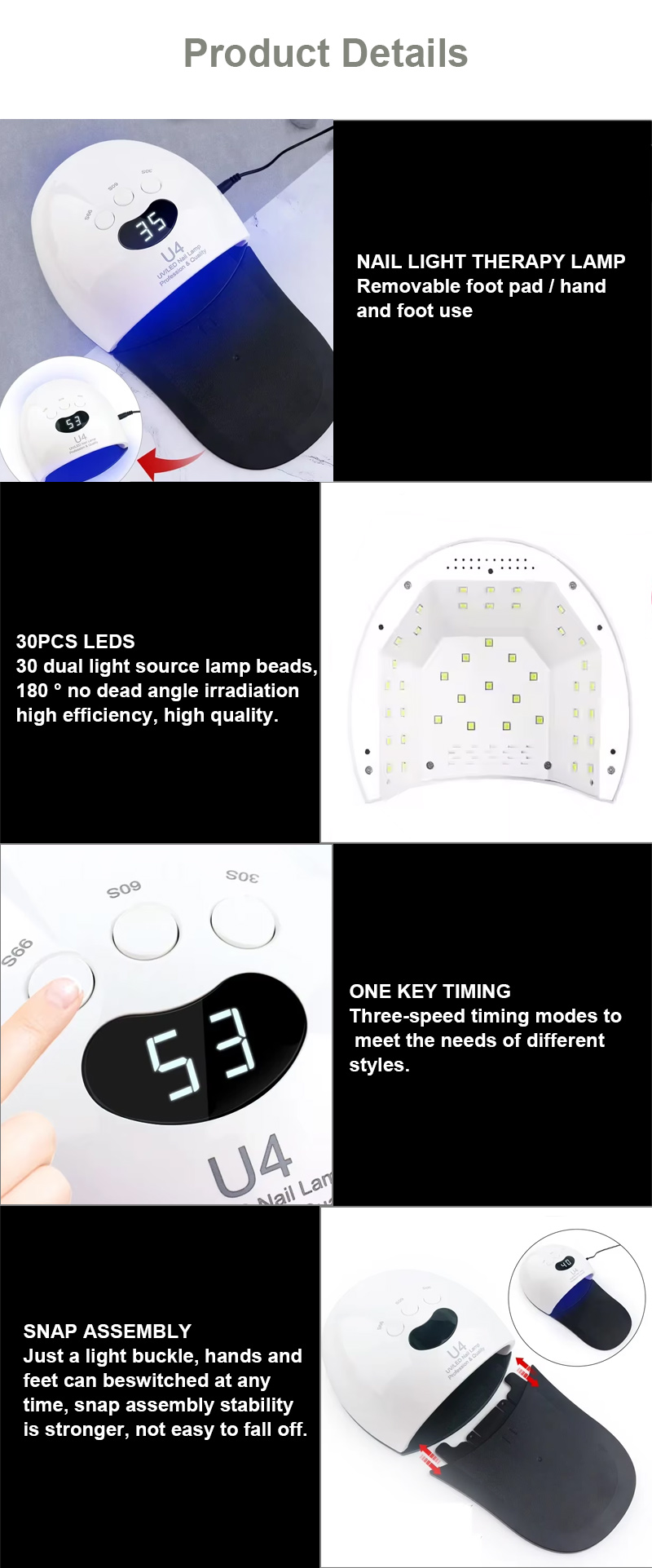 この高品質 LED ネイル乾燥ランプは、接着剤を収縮させることなく均一に乾燥させます。デュアル光源は穏やかな加熱を提供し、手の変色や目の疲れを防ぎ、手と足の両方に適しており、驚くほど速い乾燥結果をもたらします。