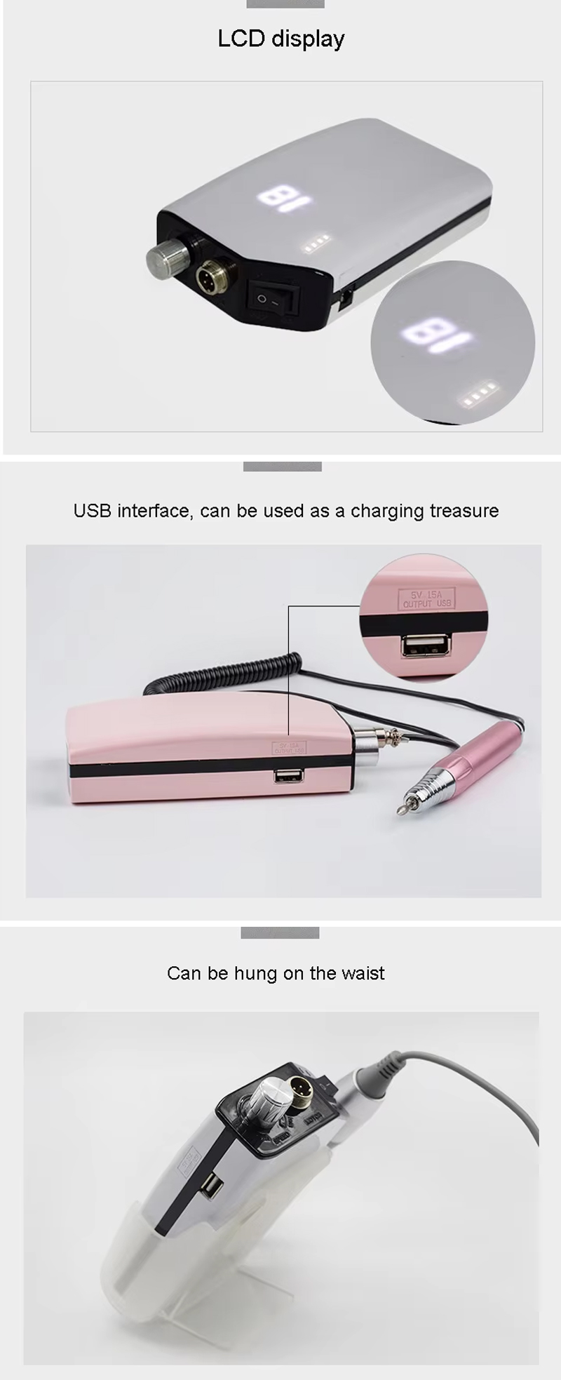 한국어深センルイナ光電子有限公司中国を代表する高品質の白い電動グラインダーのメーカー、サプライヤー、輸出業者です。製品の完璧な品質の追求を堅持し、当社の803高速35000 RPMマニキュアリムーバー電動爪やすりは多くのお客様に満足していただいています。究極のデザイン、高品質の原材料、高性能、競争力のある価格はすべての顧客が望んでいることであり、それは私たちが提供できるものでもあります。もちろん、万全のアフターサービスも欠かせません。