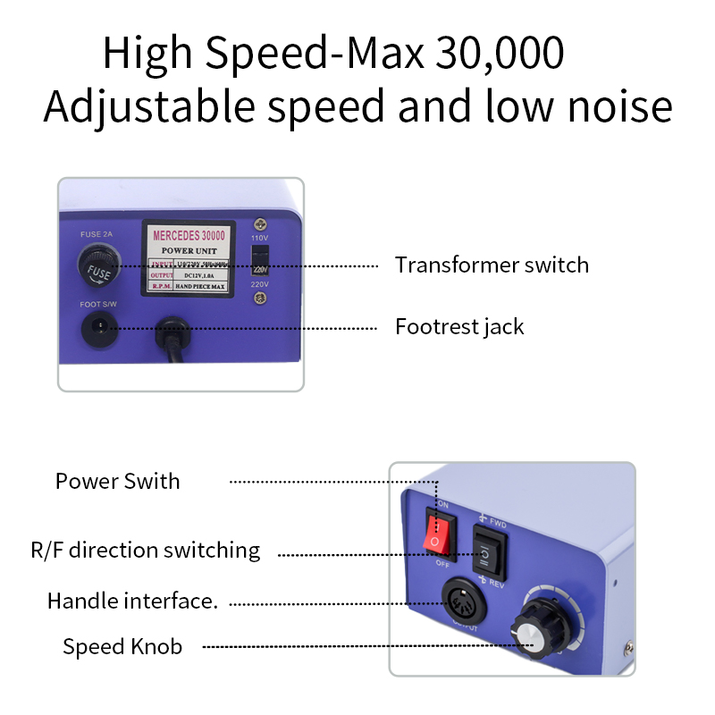 1、調整可能な速度、強力なモーター、高速サンディング、無限ノブのリアルタイム速度調整。