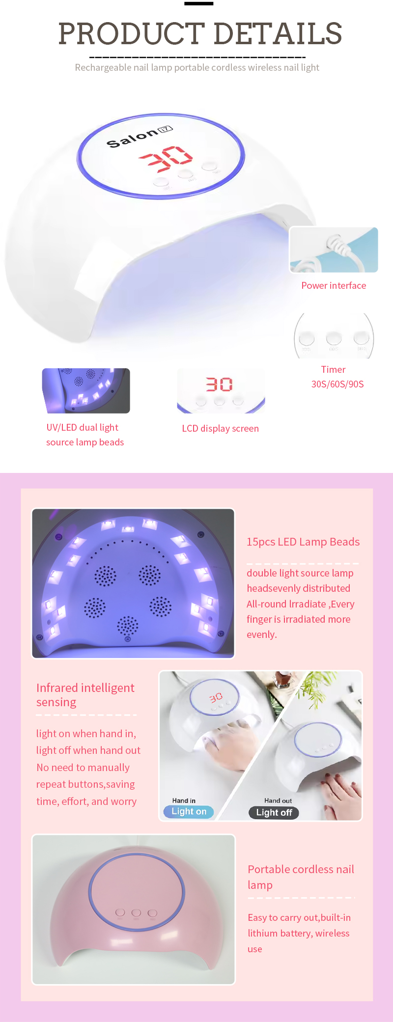 この製品は、接着剤を収縮させることなく均一に乾燥させます。デュアル光源は穏やかな加熱を提供し、手の変色や目の疲れを防ぎ、手と足の両方に適しており、驚くほど速い乾燥結果をもたらします。