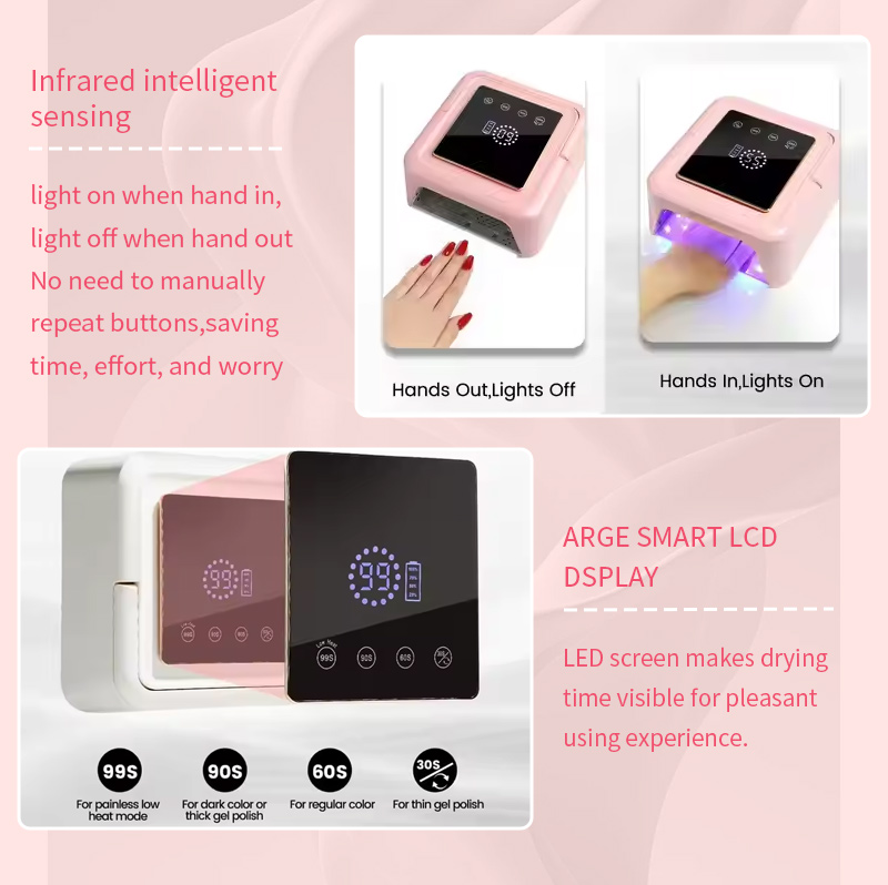 한국어専門メーカーとして、当社はカスタマイズされた新しいジェルネイルポリッシュ速乾ランプを提供できることを嬉しく思います。私たちはプレミアムなアフターサービスを提供し、タイムリーな配達を保証します。この製品は、手に優しいインテリジェントな赤色光テクノロジー、5 秒の急速乾燥、大型タッチスクリーン ディスプレイを備え、タイマー機能をサポートしています。直感的なボタン操作と充実した操作ガイダンスにより、まったくの初心者でも簡単に使用できます。