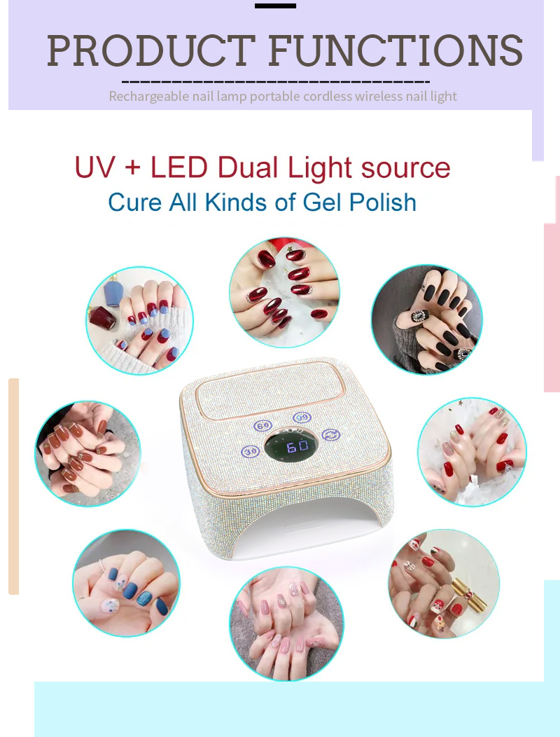1、デュアル光源LEDビーズは、さまざまな爪の接着剤と機能的接着剤を焼くことができます。