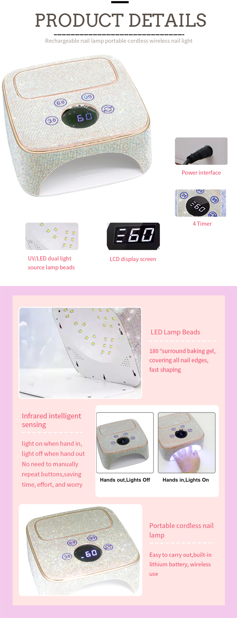 ネイルアートの製品の詳細クイックドライLED特別硬化ベーキング接着剤ランプ