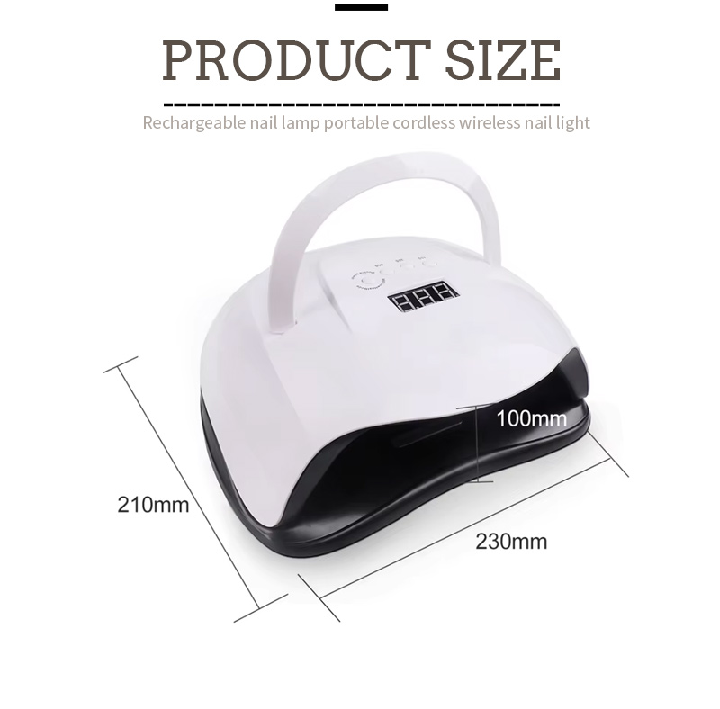 このポータブルネイル乾燥ランプは、手が近づくと自動的に点灯し、離れると消灯する赤外線スマートセンシング技術を備えており、ボタンを繰り返し押す煩わしさがなくなり、時間と労力を節約できます。強力なベーキンググルーを使用すると、長時間待つ必要がなく、時間と労力の両方を節約できます。