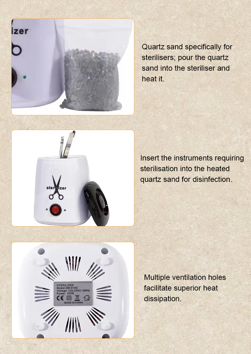 この滅菌器は主に加熱リングを通じて熱を発生させ、高温を利用して消毒を行います。