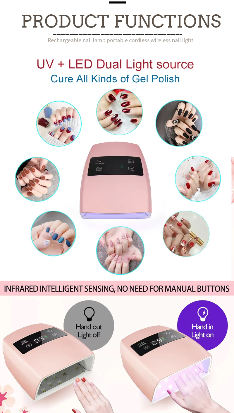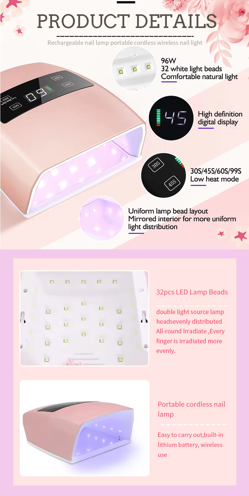 この製品は、接着剤を収縮させることなく均一に乾燥させます。デュアル光源は穏やかな加熱を提供し、手の変色や目の疲れを防ぎ、手と足の両方に適しており、驚くほど速い乾燥結果をもたらします。
